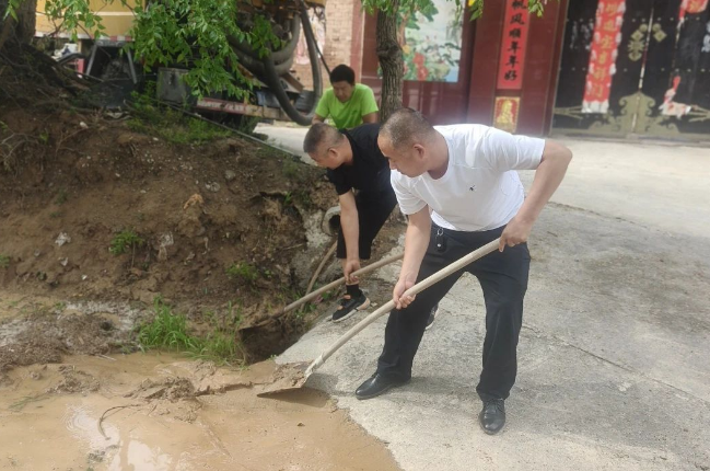 暴雨如注,山洪奔涌!近日,連續兩場強降雨如猛獸般席卷董家嶺村,道路被沖毀、窯洞房屋受損、淤泥堆積成山。危急時刻,陽城縣寺頭鄉董家嶺村黨支部火速集結,以“排查+清淤”“修繕+重建”雙線並進,帶領群眾打響災后自救攻堅戰! 鐵腳板走村入戶,織密隱患排查“安全網” 雨勢稍緩,村黨支部迅速組織黨員干部、村民代表,以“不漏一戶、不留一險”為目標,對村內道路、橋梁、房屋、窯洞、山體邊坡等重要方位開展“地毯式”排查。