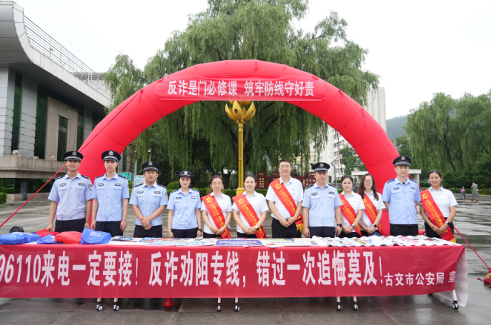 七月的古交,細雨如絲,浸潤著城市的街巷與人心。為切實提升市民防范電信網絡詐騙的意識與能力,筑牢全民反詐的安全屏障,近日,古交市公安局在市民廣場牽頭舉辦 "反詐是門必修課 筑牢防線守好責" 主題宣傳活動。