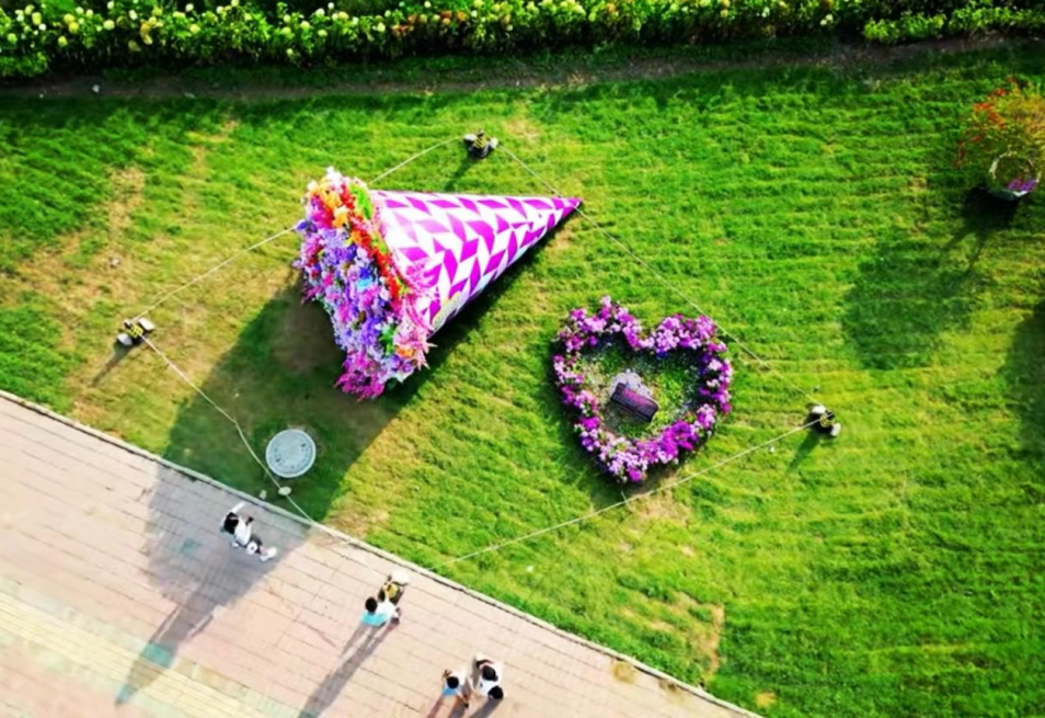 永安鎮黨委堅持以“發揮鄉田相依優勢、保護自然風光”為原則,精心選址於恆山南路,統籌安排南關村、南順村、新華村三村從村民手中流轉450余畝土地進行花海的打造,通過對所選區域的氣候、水源等種植條件的分析,選擇了20余種適合本地氣候的花卉品種進行培育種植,例如百日草、繁星、荷蘭菊、千頭菊、鳥尾、天天開、月季、三角梅、山茶、紫薇、木繡球、無盡夏繡球、福祿考、波斯菊、鼠尾草、日光菊、孔雀草等等。為了進一步提升花海景觀帶整體的漫畫感和游客們的體驗感,給游客們提供一處駐足歇腳的好去處,永安鎮黨委還在花海之間鋪設了木質棧道,並沿著景觀帶的方向投放了12把網紅卡通座椅、100余盞太陽能鳥巢燈、50余條炫彩風車帶和裝飾性的熱氣球。
