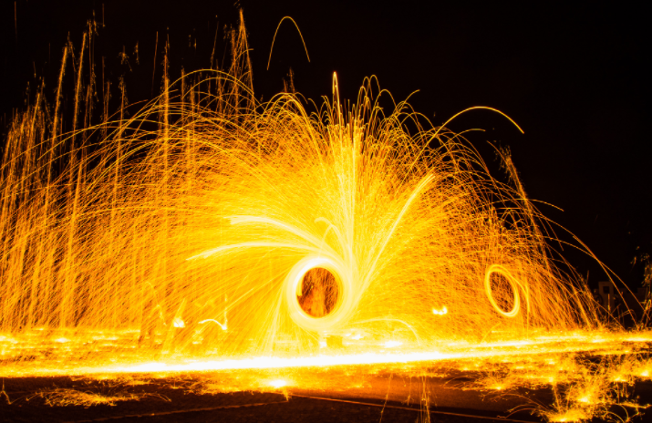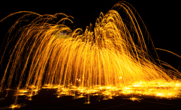 左權縣寒王鄉曹家寨村的打花藝人全副武裝,輪流向空中擊打鐵水,隨著每一次敲擊,朵朵鐵花綻放夜空,如天女散花般絢爛奪目。光影交錯間,滾燙的鐵水被賦予了生命力與藝術感,令人嘆為觀止。