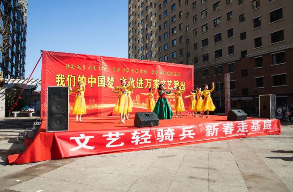 在鴻基城府小區文化廣場,文藝演出在舞蹈《啟航春天》中拉開序幕。一個多小時的時間裡,舞蹈、鼓書、現代舞、小品等多個節目輪番上演。表演者以扎實的藝術功底和嫻熟的表演技巧,把演出一次又一次推向高潮,贏得現場觀眾連聲叫好。前來觀看表演的居民梁杰說:“這次文藝表演來到我們社區,不僅滿足了我們在家門口看精彩表演的願望,還為我們增添了春節的熱鬧氛圍。”