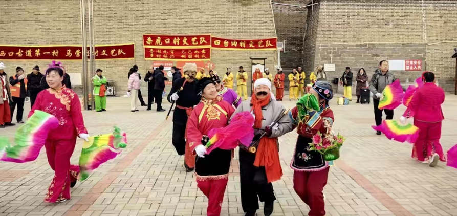 山西新聞網三農頻道訊 金蟒迎春鬧元宵,雄關亦柔情﹔民俗匯演展風採,文化永傳承。元宵佳節之際,右玉縣殺虎口風景名勝區各村文藝隊齊聚殺虎口長城腳下,用扭秧歌訴說著西口的豪邁與柔情,通過傳統的大秧歌、舞獅、舞龍、猜燈謎等活動展現出了新時代農村民俗文化的繼承與發揚。