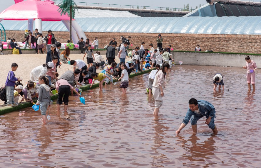 值得一提的是,御樂園在五一假期推出的“趕海”活動人氣爆棚,為春游增添了別樣色彩。據統計,節日期間園區日均接待游客超1萬人次,熱鬧非凡。沙灘上,游客們提著小桶、拿著鏟子,盡情體驗挖蛤蜊、捉螃蟹的樂趣﹔一旁的親子互動區,家長和孩子協作完成趣味任務,歡聲笑語不斷。“御樂園的建設離不開雲岡區的大力支持。我們希望通過打造這樣一個綜合性樂園,不僅為游客提供豐富的娛樂體驗,更能展現美麗鄉村的魅力,推動雲岡區鄉村文旅產業的發展。”御樂園總經理戚鵬飛表示。
