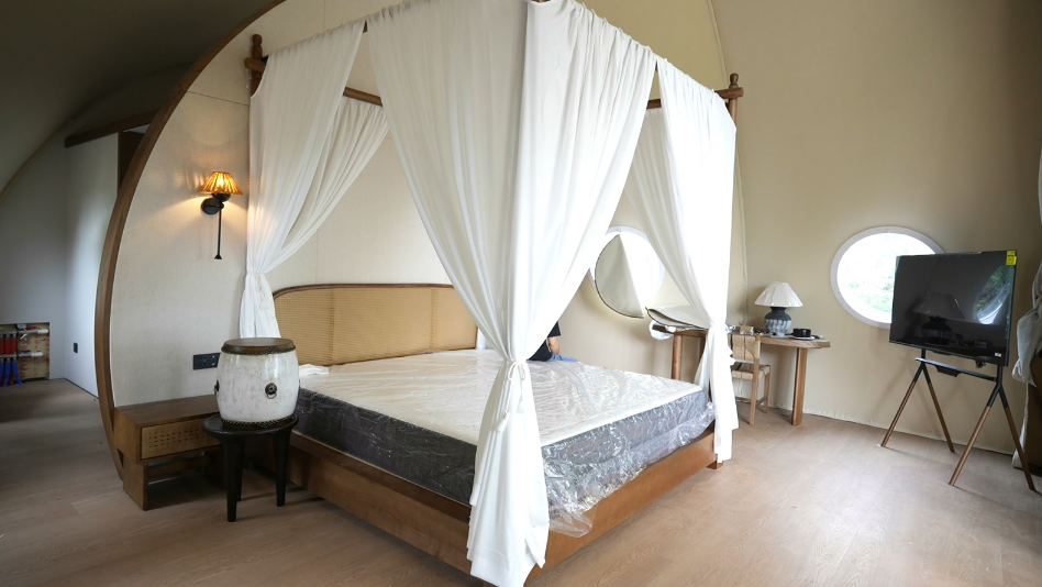 記者看到,水雲間民宿27間客房均配備智能電視、智能馬桶,部分套房的獨立庭院裡擺著竹制躺椅,坐在這裡能望見水庫上掠過的水鳥,感受帶著水汽的涼風。趙帥說,“民宿剛開業入住率就達90%,周末需提前預訂,很多客人是沖著‘星空燒烤’和‘水庫日出’來的”。