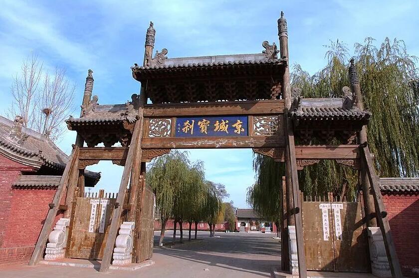 鎮國寺位於平遙縣東北12公裡的郝洞村,原名京城寺,創建於五代時北漢天會七年,即公元963年,系皇家赦建。歷經宋、金、元及至明清。寺廟傾頹,幾經修葺,明嘉靖十九年改稱鎮國寺,清嘉慶年間重修萬佛殿。整座寺院坐北朝南,寺前古槐高聳,寺內古柏掩映。寺宇規模不大,布局緊湊,由兩進院落組成,佔地面積10892平方米,建筑面積5000多平方米。現存五代、元、明、清各時期建筑44間,彩塑51尊,壁畫100余幅,以及金皇統五年的鐵鐘等。全國重點文物保護單位,1998年2月正式對外開放,1997年12月3日,連同平遙古城、雙林寺一起被列入《世界文化遺產名錄》。(史全林)
