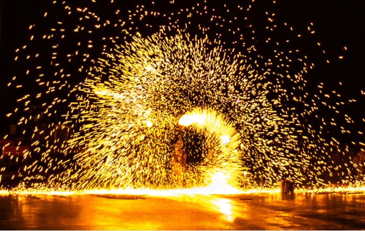 山西新聞網三農頻道訊 近日,左權縣麻田八路軍總部廣場上演了一場精彩紛呈的打鐵花表演。 左權縣寒王鄉曹家寨村的打花藝人全副武裝,輪流向空中擊打鐵水,隨著每一次敲擊,朵朵鐵花綻放夜空,如天女散花般絢爛奪目。