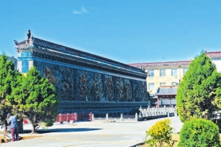 九龍壁周邊環境整治工程正在有序推進。本報記者於宏攝 記得多年前,還是少年時的記者第一次見到九龍壁時,所見九條飛龍以磅礡氣勢、飛騰之姿躍然壁上,倒影池中龍影浮動、活靈活現,深為這座體量恢弘、金碧輝煌的龍壁所震撼。