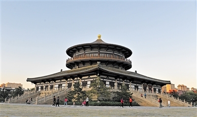 圖為北魏明堂遺址公園。 本報記者 於宏攝 每次從車水馬龍的繁華街市經過北魏明堂遺址公園,看到在林立的高樓間這片氣勢開闊、雄渾古朴的建筑群,感覺其就像一個偌大的“棋眼”,以強大的氣場將整個城南區域的氣韻都盤活了,並以一種難以言說的文化輻射力,在展現其典雅厚重文化魅力的同時,賦予周邊區域更加繁華的發展氣象,讓人不由得感嘆:這就是文脈的力量!而每當在清晨或黃昏,置身明堂遺址公園,在天圓地方的格局中體會天人合一的心境,流連園內古意朴拙的北魏風格石雕,仰望庄嚴肅穆的明堂,看到眾多市民在園內散步、休閑、跳舞、健步的身影和歡欣的笑臉,更是由衷感慨:這就是文化復興帶給生活在這座城市裡人的莫大福祉! 北魏明堂遺址位於平城區南環路與向陽街之間,周邊大型生活社區林立,充滿現代氣派,容納潮流匯聚,生活氣息濃郁。