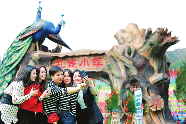 10月28日,游客們正拍照留念。近年來,在省市縣財政支持下,婁煩縣在順道村建起了集特禽養殖場、肉蛋生產標本加工、生態觀光於一體的綜合性特色農業項目——孔雀小鎮。