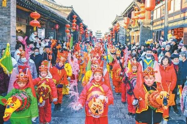 山西新聞網三農頻道訊“賣牛肉賣玉米!家家戶戶都來喜!” 2月1日,正逢正月初一,平遙古城內熙熙攘攘、熱鬧非凡,來自古陶鎮北城“平遙中國年”巡街表演團隊的貨郎隊正賣力吆喝著…… 當日上午10時整,由古陶鎮政府組織的軍樂、秧歌、舞龍、舞獅、竹馬、腰鼓、高蹺、貨郎8支“平遙中國年”巡街表演隊伍由古城迎薰門進入,途經古城南大街、衙門街、西大街等地,為民眾帶來一場豐富多彩、誠意滿滿的年俗文化表演。傳承悠久、受眾廣泛的年俗文化表演吸引了眾多游客追隨觀賞、拍照“打卡”。