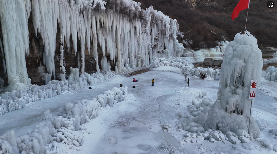 山西新聞網三農頻道訊 進入數九寒冬時節,昔陽縣瓮山景區迎來旅游熱潮。美如畫的冰瀑吸引了眾多游客前來觀賞游玩。