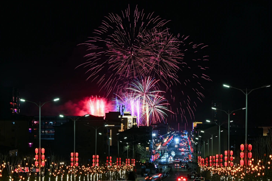 山西新聞網三農頻道訊 2月13日晚上,和順縣舉辦以“煙火盛綻幸福夜 華彩映照和順年”為主題的2025年元宵節焰火晚會,如瀑如泉的焰火在濕地公園的上空傾瀉而下、華麗綻放,縣城的夜空瞬時映照在繽紛絢麗的焰火之中。 星空作幕,焰火為筆。