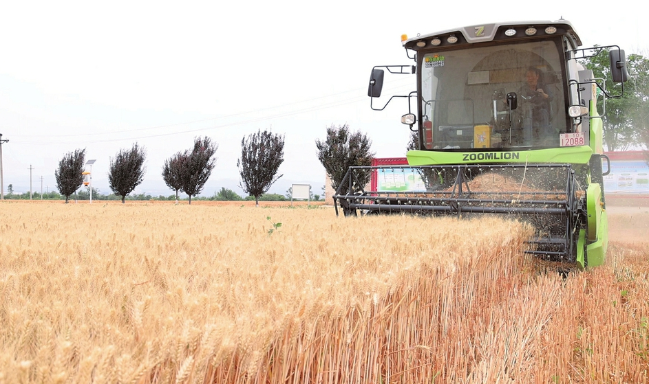 圖為收割機在翼城縣石橋村農業托管大田中進行作業。杜春春攝