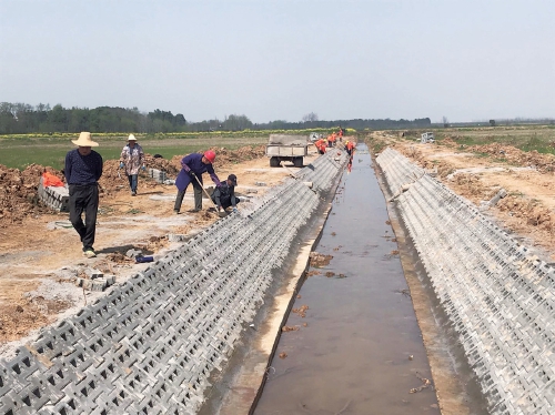 漢壽縣龍潭橋鎮杉樹園村高標准農田建設項目施工現場。 陽春四月,記者來到湖南省漢壽縣高標准農田項目區,隻見田間機耕路已修成了泥結碎石路面,田頭新建的提灌泵房格外醒目,剛剛修好的灌溉渠延伸向遠方…… 2019年11月,漢壽縣啟動新一輪大規模高標准農田建設,5個月來,該縣通過科學規劃、規范管理、嚴格標准、精心施工,現已完成了全部建設任務的70%以上,良好的經濟效益、社會效益和生態效益正逐漸顯現。
