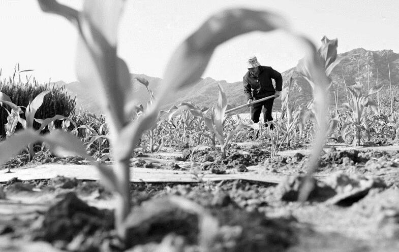 5月5日,在江蘇省連雲港市朝陽街道西庄村,村民在玉米地裡除草、鬆土。當日是二十四節氣中的立夏,各地農民搶抓農時,田間地頭一派繁忙景象。