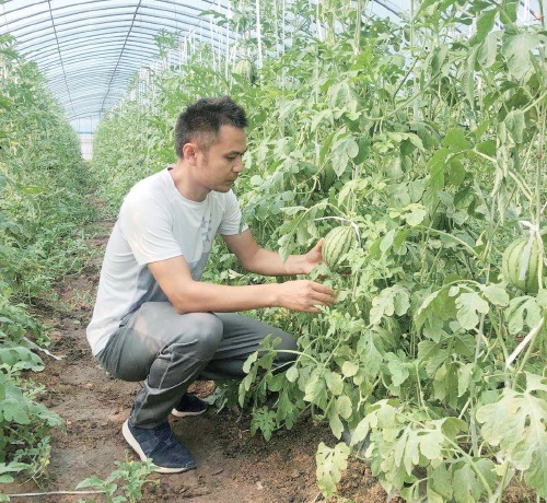 任毅在大棚裡察看西瓜長勢。 資料圖 閱讀提示 炎炎夏日,清爽香甜的西瓜已成為人們必備的消暑佳品。
