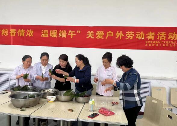 粽子包好后,街道领导干部一起为辖区内环卫工人、外卖小哥等送上装满情谊的粽子,表达对户外劳动者端午节安康、家庭和谐的美好祝福,彰显干群一家亲的深厚情谊。环卫工人张林梅说:“感谢街道各位领导对我们户外劳动者的关爱,我们也希望通过自己的努力服务好街道,为居民提供更干净整洁的环境,为宜居古交贡献力量。”