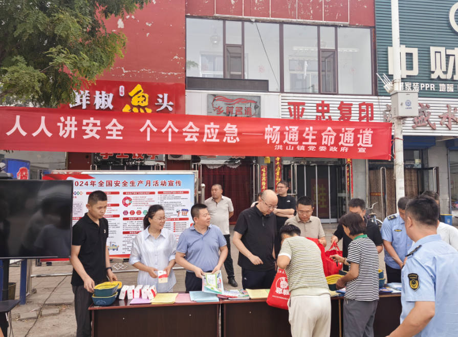 洪山镇积极开展安全生产“五进”宣传,深入企业和学校播放警示宣传片、开展应急逃生演练,同时组织动员干部、网格员登门入户,面对面开展安全知识宣讲。为了进一步扩大宣传力度,洪山镇借助6月16日安全宣传咨询日契机,指导各村借助广播站、网格群开展线上宣传,并在三佳村便民市场设立咨询台,开展户外宣传活动。活动现场,工作人员通过悬挂横幅、播放视频宣传片、分发“安全知识明白书”等资料,向来往群众普及日常安全知识与自救技巧,让安全意识深入人心。