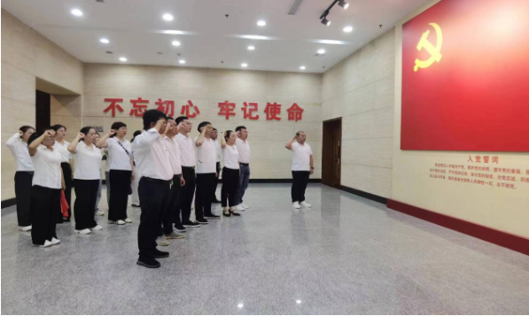 在纪念馆常设展区内,大家重温了八路军革命先辈们在艰苦岁月里浴血奋战的英雄气概和崇高精神,共同感受峥嵘岁月,追忆英雄事迹,接受红色教育。最后,在支部书记梁思凡带领下,全体党员面对纪念馆大厅庄严神圣的党旗重温入党誓词。