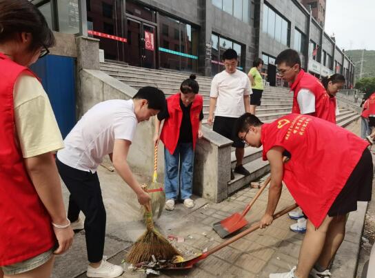 开班仪式结束后,组织开展了第一期学生暑期社会实践志愿服务活动——扮“靓”家园,红马甲在行动。此次活动,以打扫凤凰城小区后巷主干道路的环境卫生为主,志愿者们身穿红马甲,手拿铁锹、扫帚等清洁工具,对发现的卫生死角杂物及时进行清理。同时,志愿者们还向居民宣传美好环境、人人有责理念,引导社区居民学文明、讲文明,齐心协力改善居住环境,共建和谐、文明、整洁的美丽家园,形成人人参与、共建共享的良好氛围。