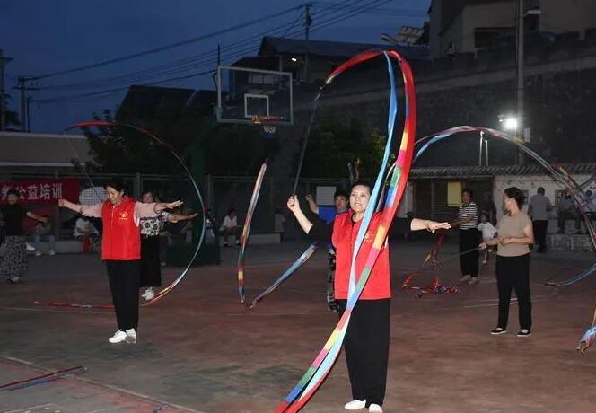 山西新闻网三农频道讯 在这个充满热情与活力的夏季夜晚,阳城县西河乡中寨村的篮球场上灯火辉煌,热闹非凡。一场别开生面的广场舞和彩带舞培训正在如火如荼地展开,为村民们的夏日生活增添了一抹绚丽的色彩。