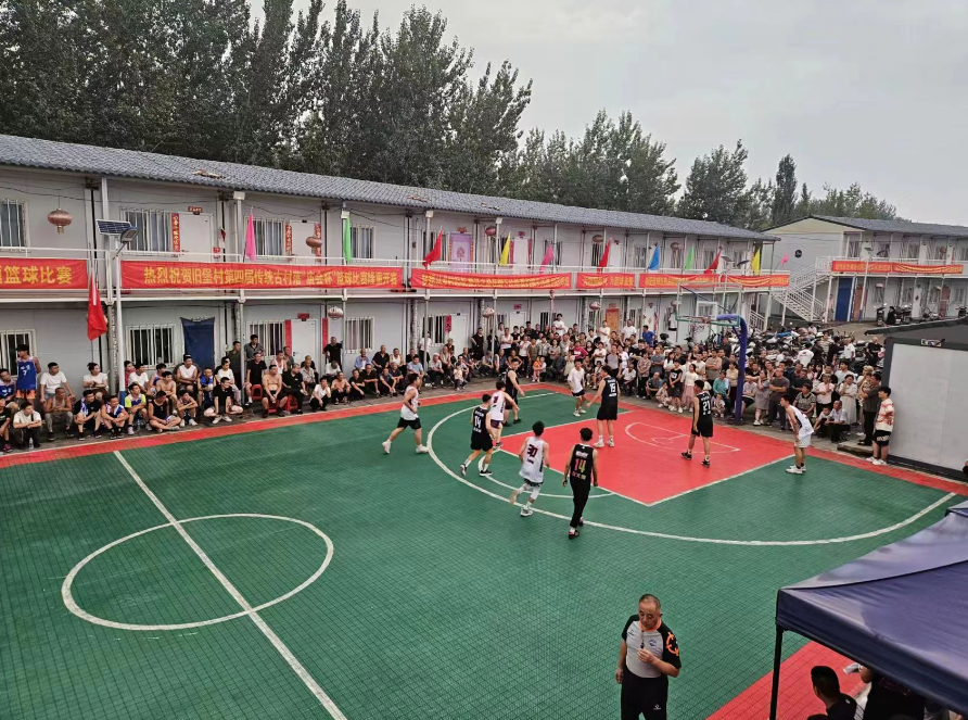 在旧堡村篮球场,汇聚了各村、企、学校等14支参赛队伍,展开了连续三天的激烈角逐。场上运动员们全神贯注,来回拼抢,三分远投、抢断快攻、篮下强打、过人妙传等精彩动作频频上演,每位队员都展现了出色的球技和崇高的体育精神。场外观众笑声、呐喊声、加油声此起彼伏,为庙会带来无限活力与热闹,成为庙会的时尚风景。