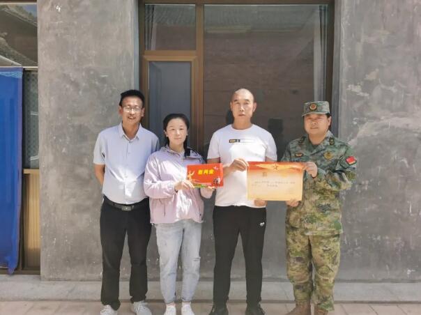 西河底镇退役军人服务站联合镇武装部到西河底村和西河村,为3名荣获“四有”优秀士兵的现役军人家属颁发喜报、送上慰问金,并向军人军属致以崇高的敬意和诚挚的慰问。