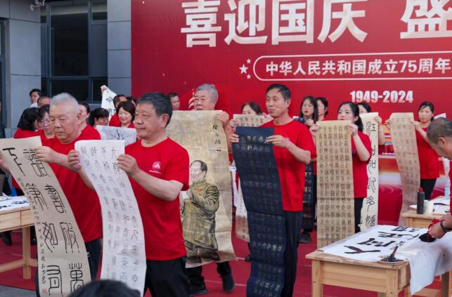 活动在一片欢声笑语中拉开序幕,戏曲表演者们粉墨登场,唱念做打,将传统戏曲的魅力展现得淋漓尽致;合唱队伍精神抖擞,歌声嘹亮,他们用满怀深情的歌声歌颂新中国的繁荣昌盛;民族与现代舞蹈交织,既有浓郁的民族风情,又有时尚的现代气息。舞者们用优美的舞姿,展示了西关街村村民的活力与激情,为现场观众带来了一场视觉盛宴;朗诵者们声情并茂,用诗歌传递着对新中国的热爱之情。他们的朗诵,如同一股股暖流,温暖着在场每一个人的心灵,将爱国情怀深植于大家的心中;活动现场,书画艺术家们挥毫泼墨,现场创作,一幅幅精美的书画作品跃然纸上,书画展不仅展示了村民的艺术才能,也让传统文化在新时代焕发出新的光彩。