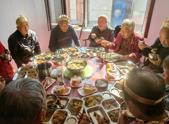 白家社村则举办了一场别开生面的生日派对。村里特意为重阳节当天过生日的老人准备了蛋糕。在欢快的音乐声中,大家一起唱起了生日歌,为老人们送上了最真挚的祝福。