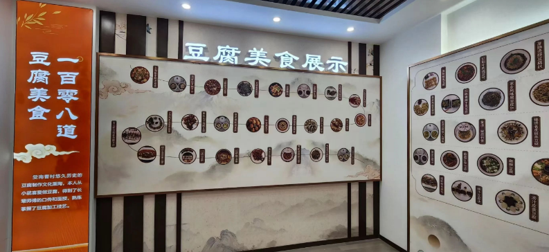 陈列馆内越窑宣传以人工讲解、展板陈述、展品陈列为主,同时配套智慧大屏,再现南曹豆腐的辉煌历史、制作场景,为游客提供沉浸式体验,使游客直观地了解豆腐的历史背景及制作技艺。豆腐文化旅游产业园设立了豆腐制作体验区、现代豆腐生产区、豆腐装饰艺术区、豆制品牌博览与销售等展馆、展区,建成后的品牌文化馆每日可接待1000余人进行观摩。积极提升“四月八文化艺术节”“春节文化周”“科协科普活动”“非遗展览进景区”等文化活动的档次,更大范围地聚人气、增流量,唱响“农文旅”融合的协奏曲。