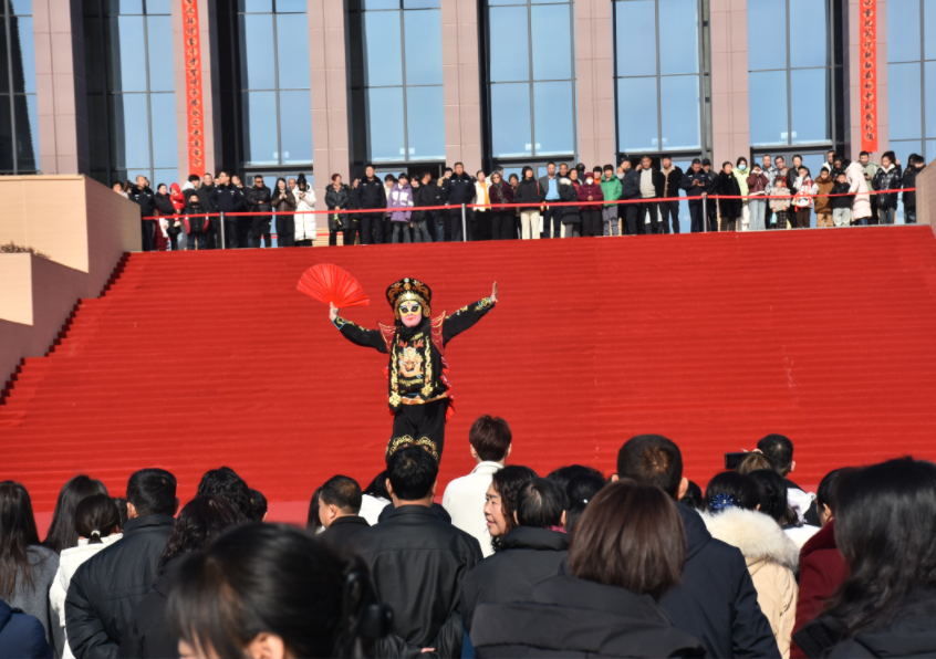 开场威风锣鼓《金蛇献瑞》以磅礴的力量和激昂的节奏,瞬间点燃了现场的热情,拉开了社火展演的序幕。传统民俗表演《骑上毛驴迎新年》、歌舞《牵丝戏》、腰鼓《欢聚一堂》、歌曲《锦绣前程》、非遗《川剧变脸》、戏曲《徐策跑城》、民俗表演《龙腾蛇舞》等一个个精彩节目轮番上演。