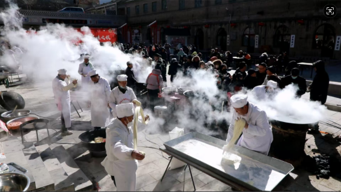 游客冯瑞婵说:“昔阳的拉面是最好吃,热腾腾的大锅拉面,大部分的人都是慕名来吃大锅拉面。”