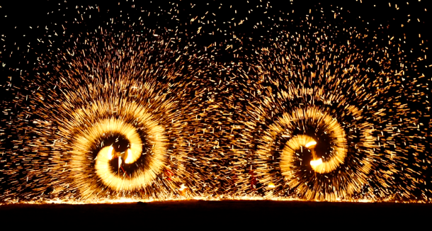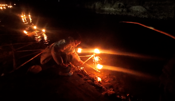 夜幕降临时,备受瞩目的大型河灯燃放祈福非遗表演拉开帷幕。河灯点亮后,游客们将河灯轻轻放入河中,带着美好的心愿随波逐流。随后,非遗传承的打铁花和火壶表演将活动推向高潮,铁火在空中绽放,如同夜空中绚丽的烟花,为河灯节增添了震撼与浪漫的氛围。