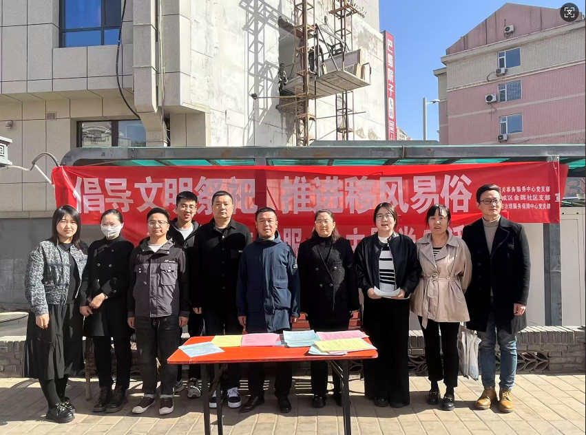 “倡导文明祭祀,推进移风易俗”宣传活动——为倡导文明、节俭、环保、安全的祭祀方式,引导辖区居民文明祭祀,金辉社区联合灵石县机关事务服务中心部、灵石县残联、灵石县基层治理服务保障中心联合开展了清明节文明祭祀宣传活动。此次宣传活动运用“线上+线下”的方式开展。线上,通过网格群、朋友圈等平台向居民推送《文明祭祀、平安清明倡议书》,提倡文明祭祀、安全祭祀的方式代替传统习俗来表达追思和缅怀之情。线下,通过发放文明祭祀倡议书,向他们耐心细致地讲解文明祭扫的重要意义,让更多人参与到文明祭祀的行动中来,共同营造良好的社会氛围。通过此次活动的开展,提升了辖区广大居民文明祭祀的意识,使文明祭祀深入人心、家喻户晓。
