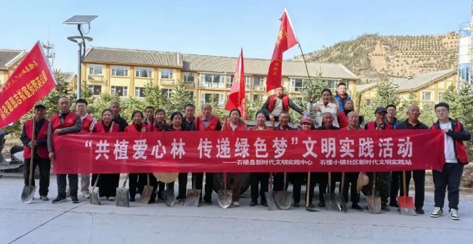 石楼县新时代文明实践中心联合小镇社区开展植绿活动