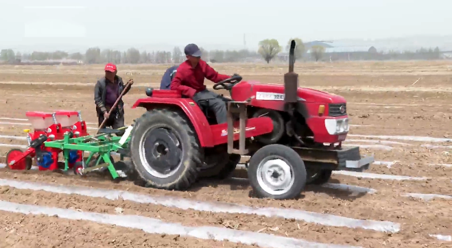 走进朔城区小平易乡安庄村的种植基地,伴随着机器的轰鸣声,播种机正开足马力,在田间地头来回穿梭,一行行滴灌带被精准铺设,一粒粒饱满的玉米种子顺势被播撒进土壤。