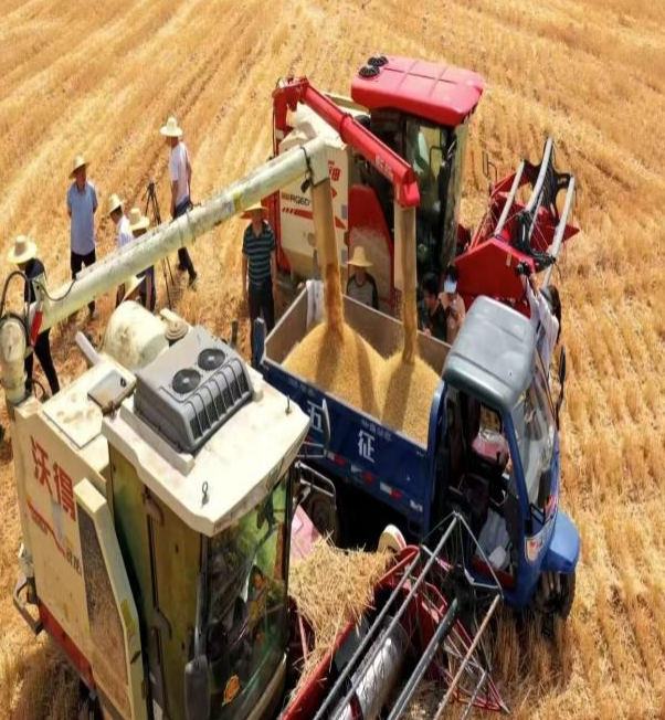 走进麦田,麦穗在阳光下闪耀着光芒,农户们深知“麦熟一响,贵在争抢”,纷纷与时间赛跑,全力投入这场麦收大战。一台台收割机在麦田里来回穿梭,伴随着机器的轰鸣声,麦秆被迅速粉碎还田,化作滋养土地的肥料,而金黄的麦粒则颗颗入仓,成为农户们辛勤劳作的成果。