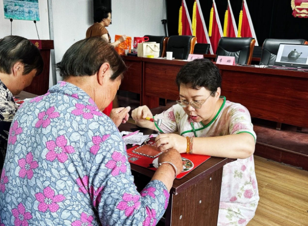 李琳老师始终穿行于学员之间,目光敏锐,及时给予点拨。当一位大姐因线条走偏而懊恼时,李老师俯身轻语:“此处稍加变化,可别有意趣。” 化“失误”为妙笔的智慧,引来周围会心的笑声与由衷钦佩。这流动的指导,让看似高冷的非遗技艺,化作眼前可触可感、充满人情味的指尖温度。一位大姐边刻边感叹:“原以为这细活儿离咱庄稼人远得很,今儿自己一试才明白,老祖宗的好东西,咱乡下人的手也能接得住、学得会!”