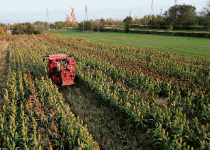 山西新闻网三农频道讯 近日,孝义市下栅乡福生家庭农场200亩高粱陆续成熟,进入收割期,颗粒饱满的高粱穗映红了田野,田间地头呈现一幅秋收的“丰”景图。 走进下栅乡王马村福生家庭农场,放眼望去,一片片成熟的高粱在阳光下翻涌着赤浪,收割机往来穿梭,收割、摘穗、脱粒、秸秆粉碎、装车……一气呵成,一派忙碌景象。