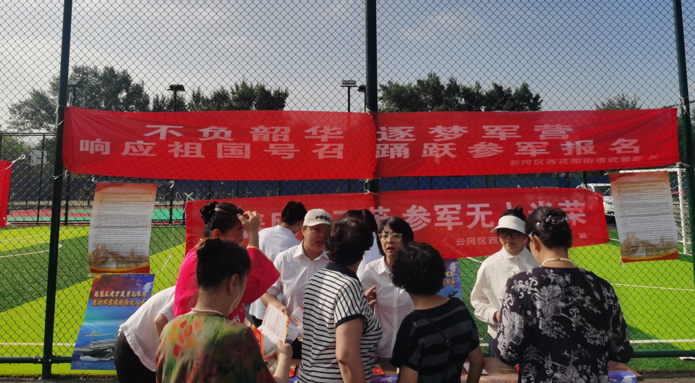近日,大同市云冈区西花园街道精心组织征兵宣传活动,通过嘹亮军歌、精准政策解读等形式,为居民送上“参军指南”,积极响应国家征兵号召,弘扬爱国主义精神,激发辖区青年参军报国热情,让征兵政策深入人心。 活动现场,激昂的《强军战歌》《中国人民解放军进行曲》循环播放,铿锵有力的旋律吸引了众多居民驻足。