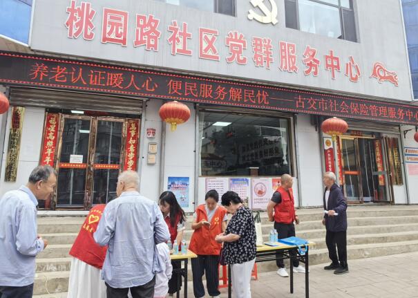 山西新闻网三农频道讯 为切实做好便民服务,进一步做好社会保险待遇领取资格认证管理,保障居民群众能够按时领取养老金,古交市桃园街道桃园路社区结合本辖区老年人较多的情况,于6月4日联合古交市人社局深入社区,为60周岁以上的老人(退休人员)及行动不便的高龄老人进行现场资格认证,让辖区群众在体验便捷的同时,感受到了暖心的社保服务。 “以前我们都要跑社保局能认证,现在年龄越来越大,孩子又不在身边,正在发愁今年该怎么办呢?你们就上门来给我们做认证了,真的是太感谢你们了!”志愿者们现场帮助老人输入基本信息,耐心引导他们完成“养老保险生存认证”,老人们脸上都露出了喜悦的笑容,对现场工作人员的暖心服务竖起了大拇指。