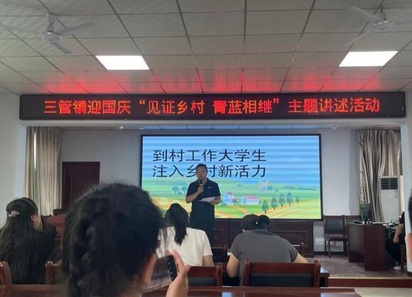 山西新闻网三农频道讯 为庆祝中华人民共和国成立75周年,临猗县三管镇党委精心安排,于9月27日下午举行“同心向党迎国庆”暨到村工作大学生、选调生迎国庆“见证乡村 青蓝相继”主题讲述活动,真正为到村工作大学生、选调生搭建了一场“擂台比武”的平台。 10名到村工作大学生、选调生经过一周的准备,围绕“见证乡村 青蓝相继”主题,结合自身在村工作实际,用生动的语言、感人的事例和青春的视角精心制作PPT、短视频,分享在基层工作中难忘的故事、感人的瞬间。