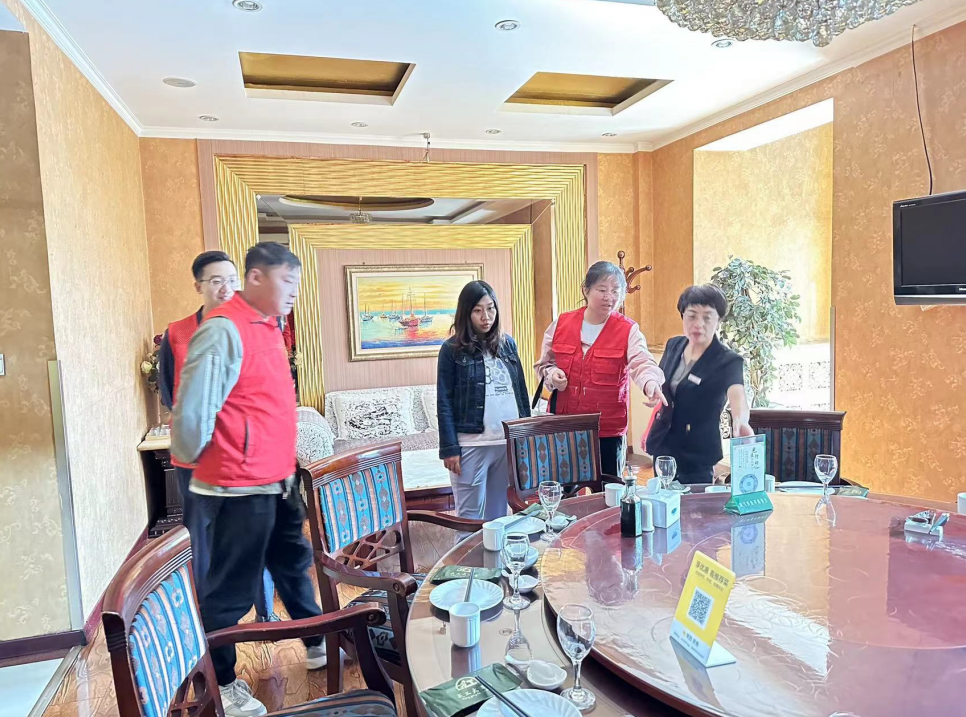 山西新闻网三农频道讯 双节将至,为确保辖区群众过上平安、欢乐、祥和的节日,同时为进一步发挥“双报到”作用,增强与双报到单位的互联互动,大同市云冈区西花园街道梨园社区党支部积极联系双报到单位,充分发挥党建引领作用,在街党工委的统一部署下,与双报到单位云冈区商务局在双节前开展了一场主题为“党建引领聚合力 节前检查保平安”的活动。 活动中,西花园街道梨园社区与云冈区商务局为全力保障消费市场健康、平稳、安全运行,工作人员深入戎工宾馆、濮唐客栈、金玉满堂以及辖区内的超市等,对运营情况、安全生产、价格秩序、客人满意率等情况进行督导检查。