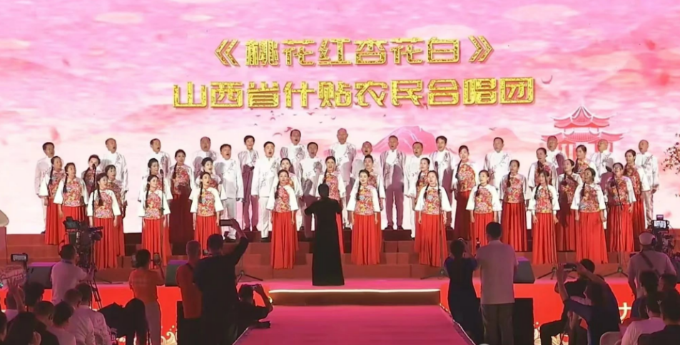 山西新闻网三农频道讯 8月28日,“歌唱祖国”大家唱群众歌咏活动暨沿黄九省(区)合唱展演活动在宁夏中卫市沙坡头区迎水桥镇鸣沙村团结大广场拉开帷幕。晋中市榆次区什贴镇农民合唱团代表山西登上星光熠熠的舞台,带着推进乡村振兴取得的喜人成绩,唱响新时代新农村新农民的新歌声。