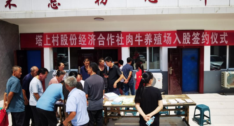 山西新闻网三农频道讯 8月4日,中阳县武家庄镇塔上村股份经济合作社肉牛养殖场入股签约仪式在塔上村党群服务中心举行,正式开始签约的第一天,有46名村民入股,筹集资金已达40余万元。 自2024年8月1日塔上村发布入股公告以来,村民积极响应,反应热烈,入股热情高涨,除了本村村民,有不少外嫁的女儿也专门回村询问政策,想要入股。