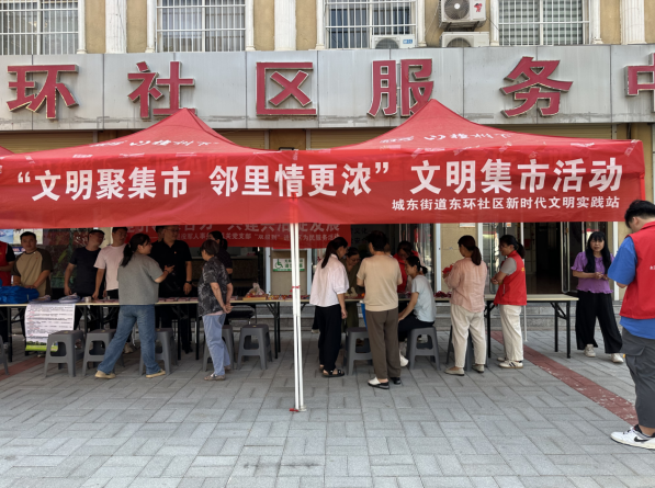 山西新闻网三农频道讯 为深化升级党建引领城市社区“幸福家园”建设,切实提升居民群众家门口的幸福指数,丰富社区文化生活,增进邻里互动,推动居民走出家门,融入社区,建设有温度有活力的熟人社区,6月16日上午,永济市城东街道东环社区新时代文明实践站联合永济市文明志愿者协会、永济市退役军人事务局在东环社区健身活动广场开展了“文明聚集市,邻里情更浓”的文明集市活动。 集市初启,氛围拉满 活动当天,社区广场热闹非凡,摊位整齐排列,涵盖了便民服务、文化传承、爱心义诊等多个区域。