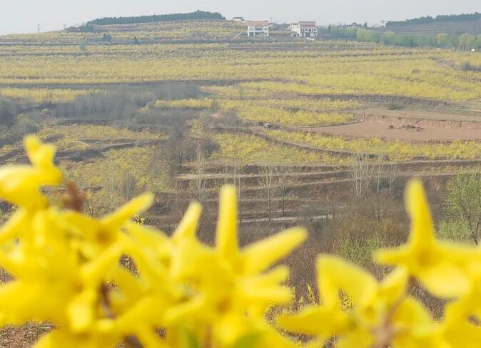 连翘花开,春满群山。眼下,北留镇头南村的万亩连翘花开正艳,远远望去,满目金黄,美不胜收,一派春意盎然的景象。