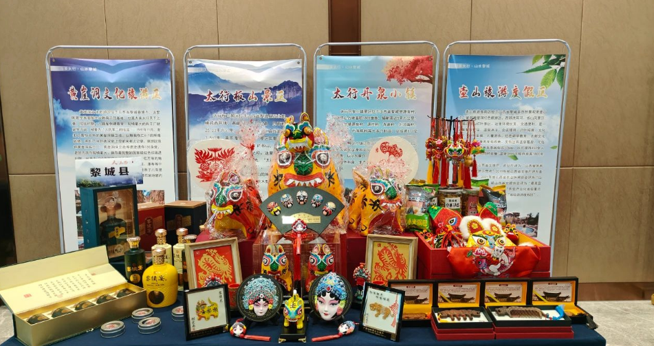 中国光谷科技会展中心,人头攒动、热闹非凡,国家级非物质文化遗产黎侯虎(布老虎),包含虎头帽、虎头鞋、虎头枕的满月礼盒以及12生肖刺绣制品等衍生文创产品;省级非物质文化遗产黎侯彩塑、杨斐剪纸;在“世界旧金山国际烈酒大赛”中取得“三金三银”佳绩的黎侯宴系列产品;以西周黎侯墓出土的玉虎为原型的木刻虎符、虎符梳子;黎侯粮小米锅巴、小米麻花等特色农产品以及黄崖洞、板山、壶山旅游度假区、丹泉小镇等文旅资源宣传展板集中亮相黎城展区,吸引了众多师生驻足、欣赏、品鉴。
