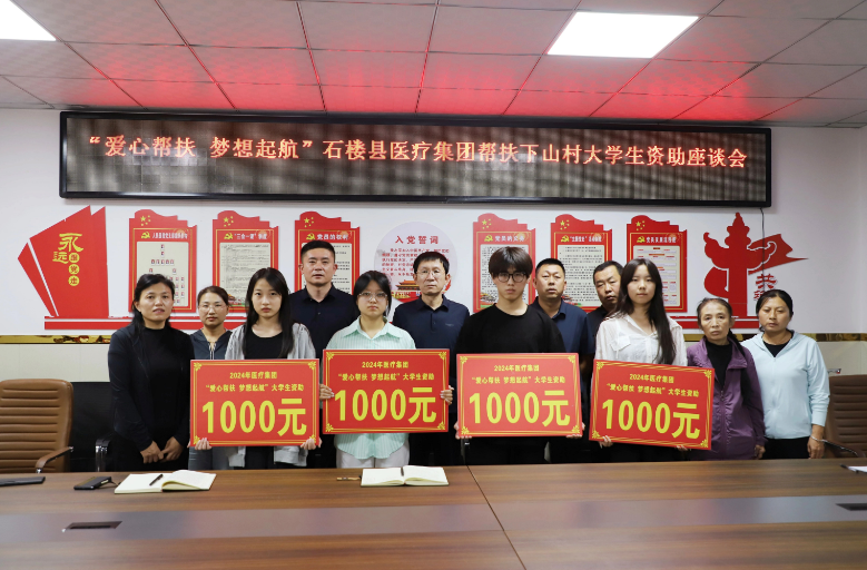 山西新闻网三农频道讯 8月26日,石楼县医疗集团举行“爱心帮扶 梦想起航”资助贫困大学生座谈会,对单位驻村帮扶点小蒜镇下山村4名今年新入学的贫困大学生进行资助,为他们每人发放1000元助学金,并送上了诚挚的祝福。