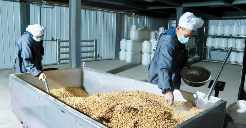 走进莜麦酒生产车间,看到工人们正在各自的岗位上忙碌着。莜麦经过淘洗、制曲、发酵、蒸馏等28道工序,清香扑鼻的莜麦酒就酿造而成。山西德裕酒业有限责任公司经理王保东说:“莜麦酿成酒后,大大提高了其附加值。”